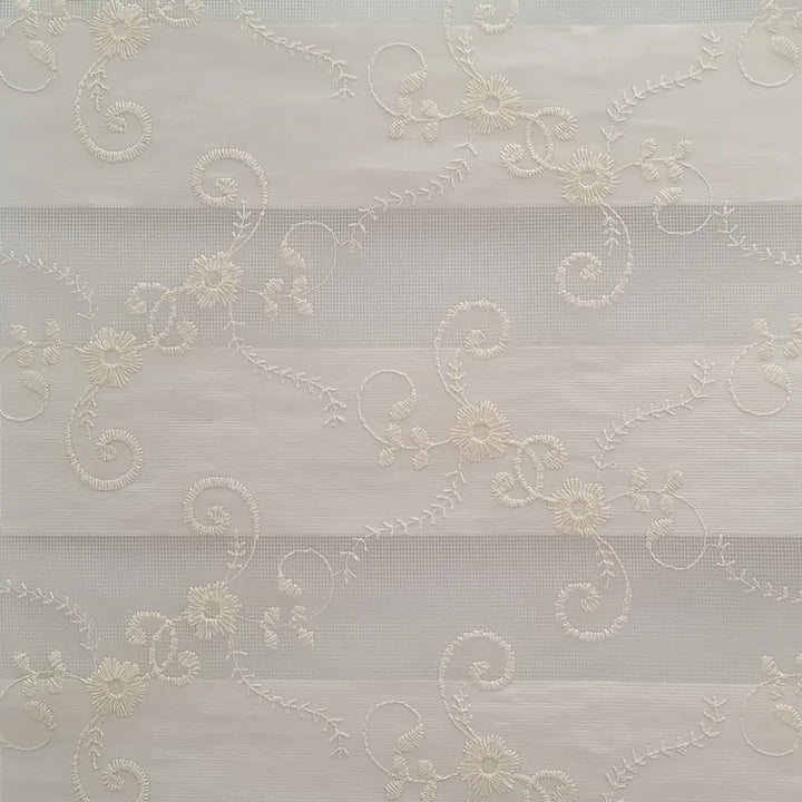 Zebra Blinds provide light filtering, protection for furniture, and save energy by keeping warm air in during winter. Cream design shapes go well with many room furniture colors.